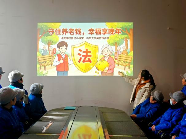 近日,为筑牢老年群体权益防线,山东大学新闻传播学院闻哲传声实践队走进山东省临沂市柳青街道荣昌社区,面向环卫工人群体先后开展了两场宣讲活动,分别是以“守护夕阳红,远离诈骗”为主题的反诈宣讲和以“守住养老钱,幸福享晚年”主题的消费者权益保护宣讲。