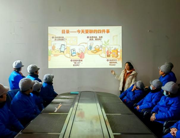 随着科技发展,诈骗手段也不断翻新。宣讲中,队员特别增加了“AI拟声换脸”诈骗防范内容,提醒大家即使接到“熟人”视频电话涉及转账也要多方核实。针对直播间里“家人们”的套路,队员揭露了虚假促销、快速到付等陷阱,提醒大家不点陌生链接、不共享屏幕。